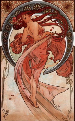 Throughout art history, artists have trended between outlining figures and rendering form purely through contrast and color. Mucha fully embraced lines, with mostly flat and low-contrast colors. The figures come to life with intentional lines and harmonious color palettes. His work has had a lasting impact on artists and contributed to the development of the Art Nouveau movement.